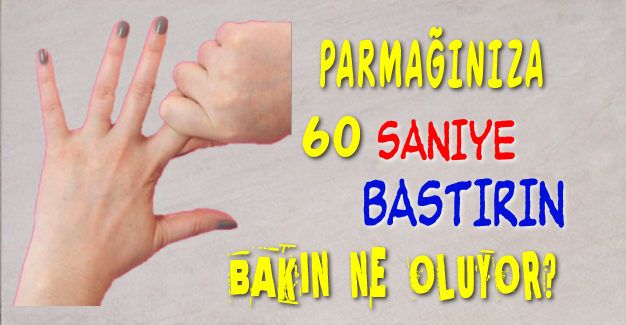 Parmağınıza 60 saniye bastırın bakın ne oluyor : Hepimizin ortak şikayeti baş ağrısı ya da vücudumuzun değişik bölgelerinin sebepsiz olarak aniden ağrımasıdır. Böyle durumlarda hemen ağrı kesici ilaç ya da doktora başvururuz fakat refleksoloji yöntemi ile 60 saniyede kurtulmak mümkün.