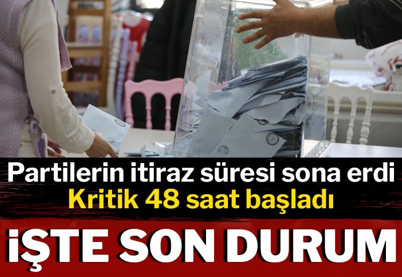 31 Mart’ta gerçekleştirilen yerel seçimlerin ardından siyasi partiler birçok yerde sonuçlara itiraz etti. İtiraz başvuruları için ilçe seçim kurullarının verdiği kararlara itiraz süresi bugün saat 17.00’de sona erdi.