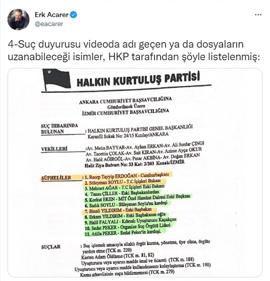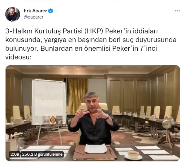 3-Halkın Kurtuluş Partisi (HKP) Peker’in iddiaları konusunda, yargıya en başından beri suç duyurusunda bulunuyor. Bunlardan en önemlisi Peker’in 7’inci videosu: