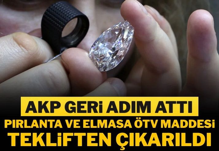 Düzenleme, pırlanta, elmas ve inci gibi kıymetli taşlardan ÖTV yüzde 20 vergi alınmasını öngörüyordu.