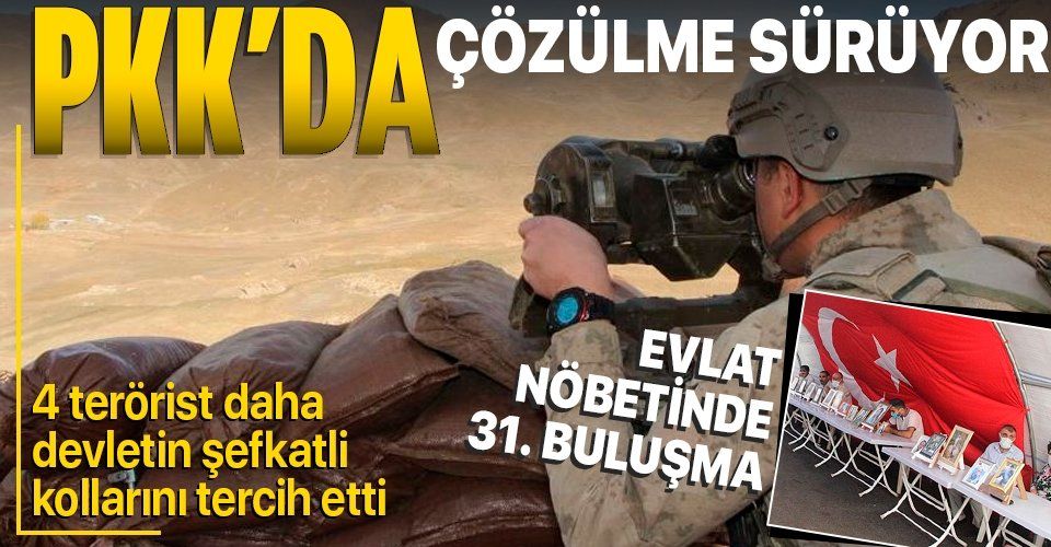 Bakanlıktan yapılan açıklamaya göre; İçişleri Bakanlığı koordinesinde Emniyet Genel Müdürlüğü ve Jandarma Genel Komutanlığı tarafından yürütülen ikna çalışmaları neticesinde; PKK/KCK terör örgütünden kaçan 4 örgüt mensubu daha güvenlik güçlerine teslim oldu. Teslim olan örgüt mensuplarından birinin ailesi, 'Evlat Nöbeti'ndeki aileler arasında yer aldığı belirlendi.