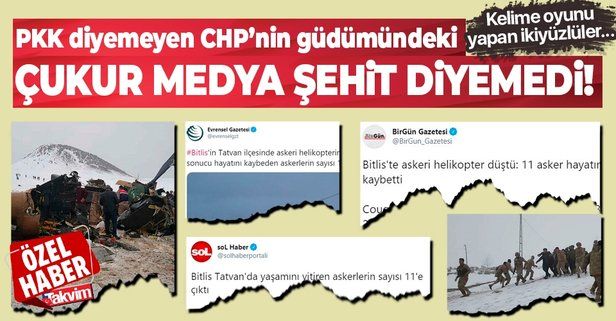 Evrensel gazetesi, "Bitlis'in Tatvan ilçesinde askeri helikopterin düşmesi sonucu hayatını kaybeden askerlerin sayısı 11'e yükseldi" başlığını kullandı. Çukur medyanın bir başka üyesi olan Evrensel'in de şehit diyememesi dikkatlerden kaçmadı.