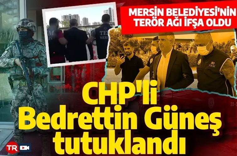 Mersin'de Polisevine düzenlenen hain saldırının ardından terör örgütü PKK/KCK operasyonunda gözaltına alınan CHP'li Mersin Büyükşehir Belediyesi Basın Yayın ve Halkla İlişkiler Dairesi Başkanı Bedrettin Güneş, tutuklandı. Polisin operasyon sırasında Güneş'e 'Yat yere Bedrettin' diye seslenmesi gündem olmuştu.