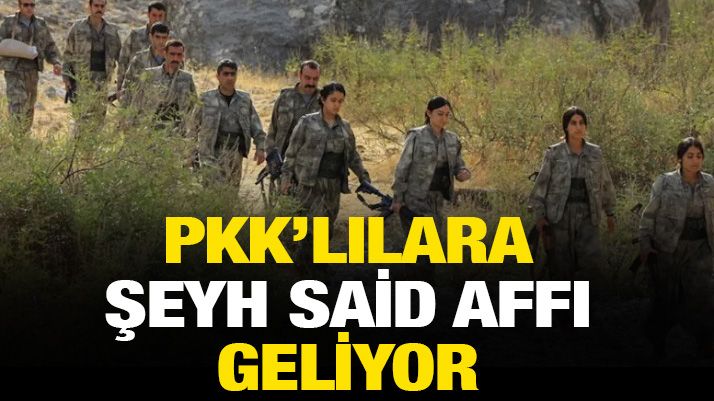 Çözüm süreciyle birlikte, cezaevindeki ve dağdan inecek PKK’lı teröristler için hukuki altyapı gündemde. Kulislerde Şeyh Said taraftarları için 1928 yılında getirilen af formülü tartışılmaya başlandı. Cezaevinden çıkacak ve dağdan inecek PKK’lılara 5 yıl süreyle “Yeni suç işlememe’’ şartı ile af getirilecek. Aksi taktirde kalan cezalarının yanı sıra daha ağır cezalar da verilecek.