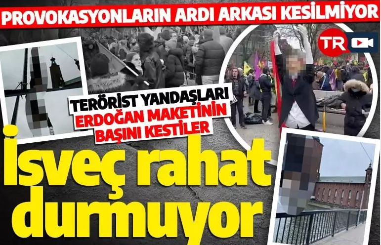 Diğer yandan terör örgütlerinin adeta üssüne dönen İsveç'te yeni bir skandal daha yaşandı. Terör örgütü PKK yandaşları İsveç'te Başkan Erdoğan'a benzeyen maket ile sokaklarda provokasyonlarına devam etti.