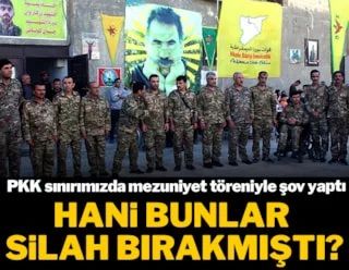 Suriye’nin kuzeydoğusunda sözde özerk kanton bölge ilan edilen Cezire’de teröristler için sözde mezuniyet töreni yapıldı. Bomba ve silah eğitimi verilen teröristler ise Apo posterleri ve PKK paçavraları altında yemin etti.