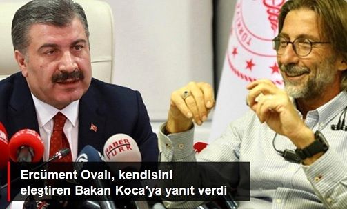 17 Mart'ta raporları Sağlık Bakanlığı ile paylaştığını kaydeden Prof. Dr. Ercüment Ovalı kendisi hakkında eleştirel açıklamalar yapan Sağlık Bakanı Fahrettin Koca'yla ilgili, "Benim asla kuşkum yok. Ben Bakan Beyin çok doğru ve çok iyi bir adam olduğunu düşünüyorum. Muhtemelen bir iletişim kazası olmuş. Ben Bakan Bey'in gerçekten çabaladığını hissediyorum. Gerçekten uğraşıyor. Kim istemez ki ülkesinde böyle bir enfeksiyonu en iyisiyle tüm gücüyle yok etsin. Benim böyle bir kuşkum yok. Sağlık Bakanı'ndan asla kuşkum yok ama sorun bu anlamda kimseyi suçlamak da istemiyorum ama ben eminim herkes, birçok bilim adamı, Bakanlık'taki birçok insan inanın çalışıyorlar. Burada hiç kimsenin sorunu olduğunu düşünmüyorum. Bazen başarısız da olabiliriz, hatalar da yapabiliriz ama burada önemli olan performans göstermektir" dedi.