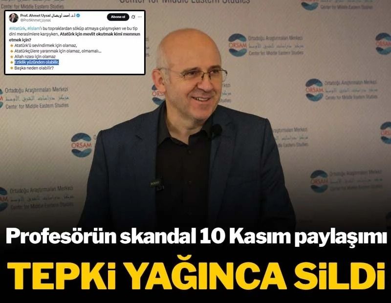 Prof. Dr. Ahmet Uysal, paylaşımında “Atatürk İslam’ı bu topraklardan söküp atmaya çalışmışken ve bu tip dini merasimlere karşıyken, Atatürk için mevlit okutmak kimi memnun etmek için?” ifadelerini kullandı.