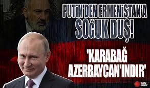 Rusya Devlet Başkanı Vladimir Putin, Azerbaycan ve Ermenistan arasındaki gerilime ilişkin dikkat çeken açıklamalarda bulundu. Putin, Ermenistan’ın Karabağ’ı Azerbaycan toprağı olarak tanıdığını dile getirdi. Karabağ’ın statüsünün Ermenistan tarafından kabul edildiğini belirten Putin bunun tartışılmasının bir anlamı olmadığını söyledi. Ermenistan ile ABD arasındaki askeri tatbikat üzerine açıklamalarda bulunan Rusya Devlet Başkanı Vladimir Putin, Rusya ile Ermenistan arasındaki bağların koptuğuna yönelik iddiaları yalanladı. Azerbaycan ile Ermenistan arasında son günlerde yaşanan Karabağ sorununa ilişkin konuşan Putin, Karabağ'ın Azerbaycan'ın olduğunu hatırlattı.