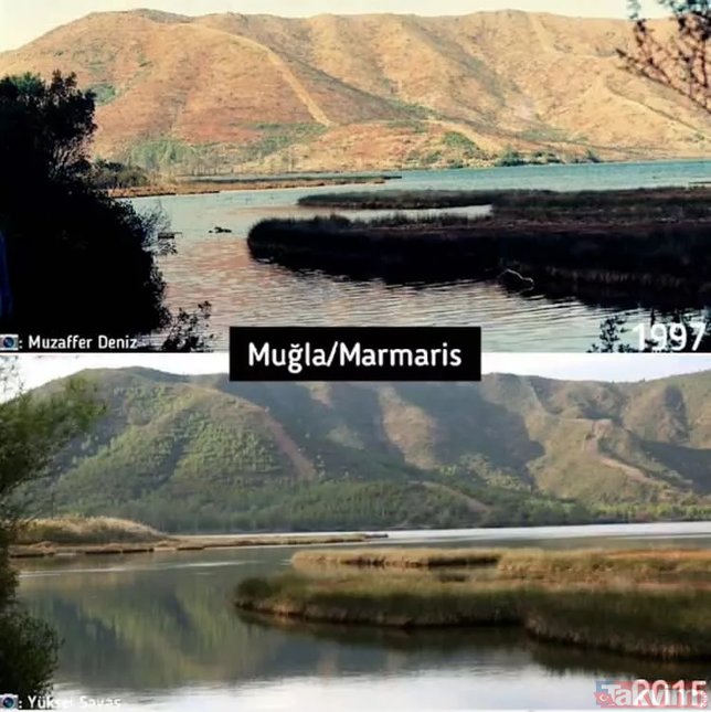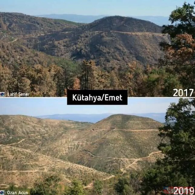 İşte karşılaştırmalı fotoğraflarla yangın öncesi ve sonrası orman fotoğrafları...