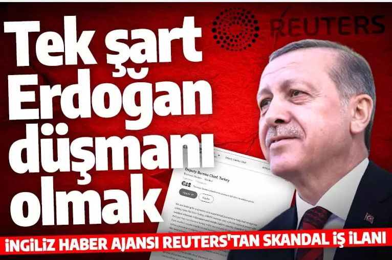 Reuters Türkiye Ofisi'nin Linkedin üzerinden yayımladığı bir iş ilanında 'Büro Şef Yardımcısı' arandığı belirtilirken ilanın açıklamasında yer alan kelimeler uluslararası basının Cumhurbaşkanı Erdoğan nefretini bir kez daha gözler önüne serdi.