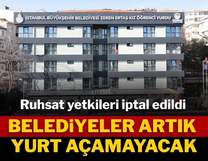 TBMM Genel Kurulu’nda kabul edilen “Bazı Kanun ve Kanun Hükmünde Kararnamelerde Değişiklik Yapılmasına Dair Kanun Teklifi” ile belediyelerin öğrenci yurdu açma ve ruhsatlandırma yetkisi kaldırıldı. Kabul edilen yeni düzenlemeye göre, bu yetkiler Milli Eğitim Bakanlığı ile Gençlik ve Spor Bakanlığına devredildi. Artık belediyeler, öğrenci yurtlarına ruhsat ve izin veremeyecek.