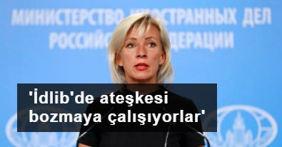 Rusya Dışişleri Bakanlığı Sözcüsü Mariya Zaharova bugünkü basın toplantısında, Suriye’de Şam’ın kontrolünde olmayan İdlib, El Tanf ve Fırat’ın doğusundaki durumun endişe verici olduğunu belirterek, "İdlib gerilimi azaltma bölgesinde RusTürk mutabakatının hayata geçirilmesi yönündeki çalışmalar devam ediyor. Genel olarak ateşkese uyuluyor, ama militanlar çabalarımızı bozma girişimlerine son vermiyor" ifadelerini kullandı.