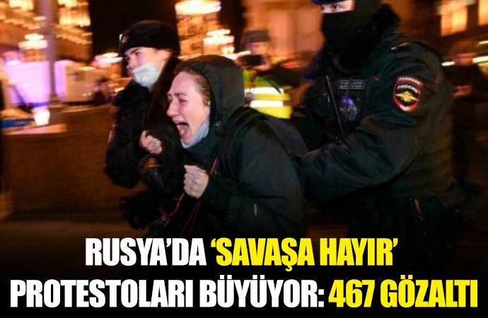 Rusya’nın 34 şehrinde Ukrayna’ya operasyon protesto edildi. Rusya genelinde bugün 467 kişi, savaş karşıtı protestolarda gözaltına alındı. Polis sayısının, göstericilerden fazla olduğu görülürken, caddeye bazı giriş ve çıkışların polis barikatlarıyla kapatıldığı görüldü.