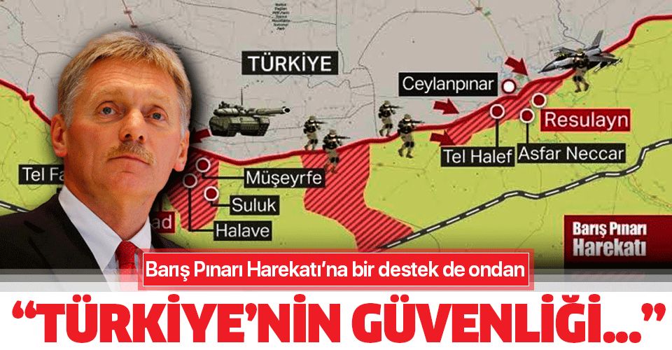 Rus haber ajansı TASS'ta yer alan haberde, Peskov'un, "Türkiye'nin kendi güvenliğini sağlayacak önlemler alma hakkına saygı duyuyoruz, ancak Türkiye'nin Suriye'deki operasyonunun, güvenlik sağlama konusundaki menfaat ve görevleriyle orantılı olmasını bekliyoruz" dediği bildirildi.