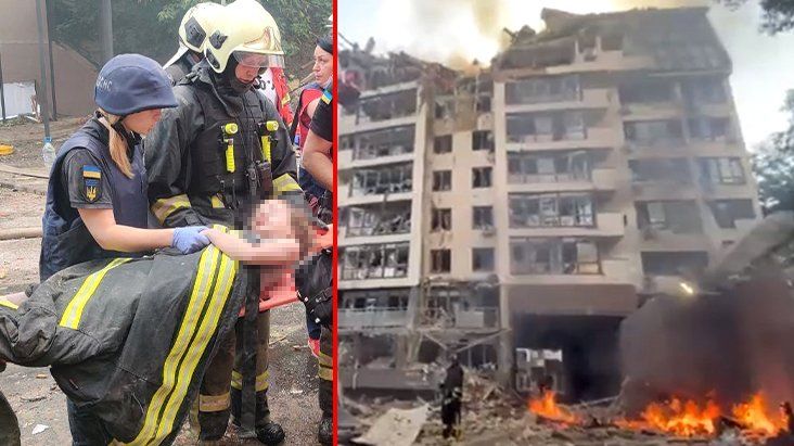 Ukrayna'nın işgalinin 123. gününde Rus ordusu, başkent Kiev'in Shevchenkivskyi semtine füze saldırısı düzenledi. Ukrayna acil servisine göre, Rus füzesinin Kiev'in Shevchenkivskyi semtindeki dokuz katlı bir apartmana isabet etmesi sonucu binanın çoğu katı çöktü ve yangın çıktı.