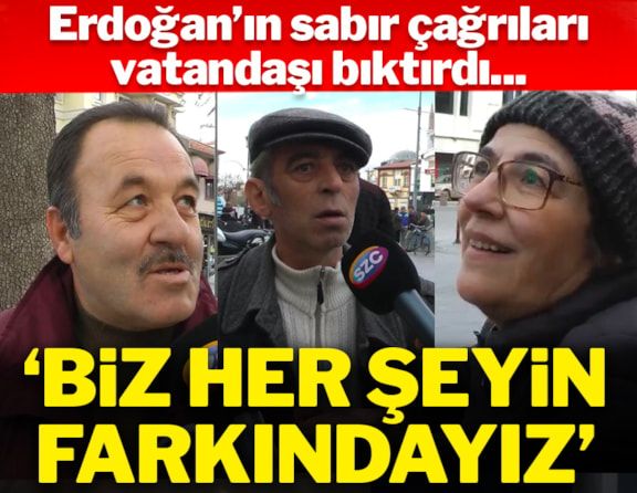 SÖZCÜ TV muhabiri AKP’nin en çok oy aldığı kentlerin başında gelen Konya’da Erdoğan’ın sabır çağrısının nasıl karşılık bulduğunu gözlemlemek için vatandaşlara mikrofon uzattı ve “İktidar vatandaşa sabır çağırısı yapmaya devam ediyor. Sizce vatandaş sabretmeyi bilmiyor, başaramıyor mu?” diye sordu. Konyalıların verdiği yanıtlar şu şekilde oldu: