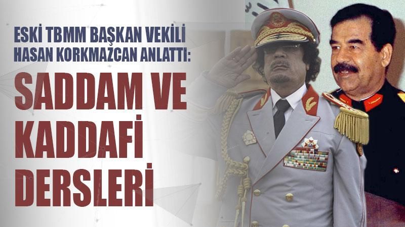 Türkiye Parlamanterler Birliği Onursal Başkanı ve Vatan Partisi Genel Başkan Yardımcısı Hasan Korkmazcan, Irak Devlet Başkanı Saddam Hüseyin ile Libya Devlet Başkanı Kaddafi’nin başına gelen olayları anlattı. Korkmazcan, ABD’nin, hedef aldığı Saddam ve Kaddafi'yi yıkmak için hem tavize sürükleyerek halk desteğini zayıflattığına hem de uluslararası müttefiklerinden ayırarak yalnızlaştırdığına dikkat çekti.