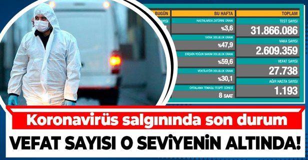 Ağır hasta sayısı 1193 oldu, 7 bin 209 kişinin Kovid19 tedavisinin/karantinasının sona ermesiyle iyileşen sayısı 2 milyon 496 bin 833'e yükseldi.