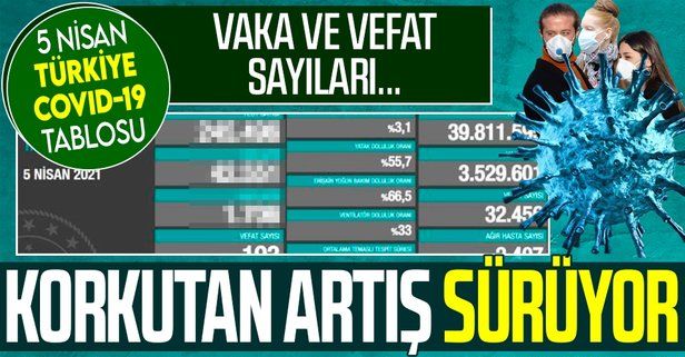 Türkiye Günlük Koronavirüs Tablosu, "covid19.saglik.gov.tr" adresinden paylaşıldı. Buna göre, Türkiye'de son 24 saatte 245 bin 496 Kovid19 testi yapıldı, 42 bin 551 kişinin testi pozitif çıktı, 193 kişi yaşamını yitirdi, hasta sayısı 1706 oldu. Son 24 saatte 25 bin 627 kişinin Kovid19 tedavisi ya da karantinasının sona ermesiyle iyileşen sayısı 3 milyon 130 bin 977'ye yükseldi. Toplam test sayısı 39 milyon 811 bin 595'e ulaştı, vaka sayısı 3 milyon 529 bin 601, vefat sayısı 32 bin 456, ağır hasta sayısı 2 bin 407 oldu. Haftalık verilere göre, bu hafta hastalarda zatürre oranı yüzde 3,1, yatak doluluk oranı yüzde 55,7, erişkin yoğun bakım doluluk oranı yüzde 66,5, ventilatör doluluk oranı yüzde 33, ortalama temaslı tespit süresi 9 saat, filyasyon oranı yüzde 99,9 olarak kayda geçti. 4 NİSAN 2021 KORONAVİRÜS TABLOSU