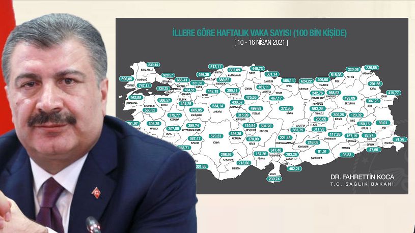 İllerin 1016 Nisan haftasındaki her 100 bin kişide görülen Kovid19 vaka sayıları şöyle: