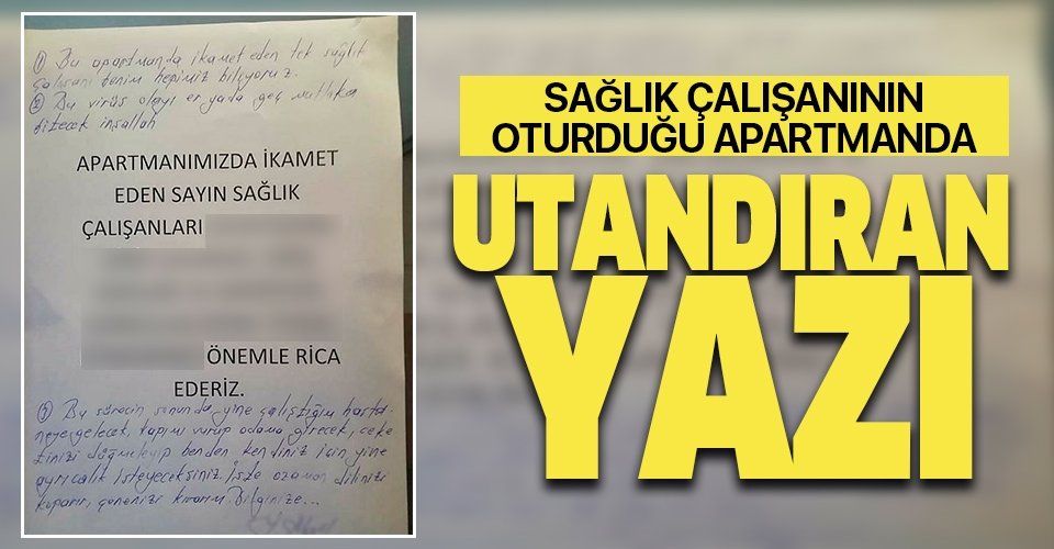 Serdivan'daki Sakarya Ağız ve Diş Sağlığı Hastanesi'nde Hasta Hakları Sorumlusu olarak görev yapan Yıldırım A. akşam ailesiyle birlikte yaşadığı eve gittiğinde apartmanın girişine asılan yazıyı görünce şoke oldu. Bilgisayar çıktısıyla apartman girişine yazılan yazıda, "Apartmanımızda ikamet eden sayın sağlık çalışanları, apartmana girip çıkarken giriş kapıları ve merdiven korkuluklarına temas etmemenizi önemle rica ederiz" ifadelerini gören Yıldırım A., yazının boş kalan kısımlarına şu sözleri yazdı: