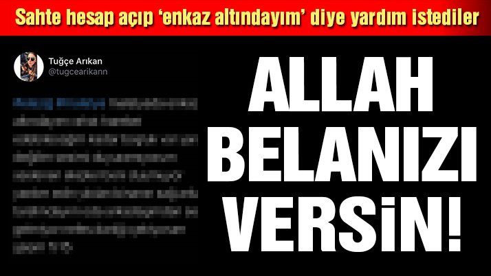 İnsanlıktan nasibini almamış birkaç şeref yoksunu ise twitter’da sahte hesap açıp, “Enkaz altındayım. Yardım edin” şeklinde paylaşımlarda bulundu.