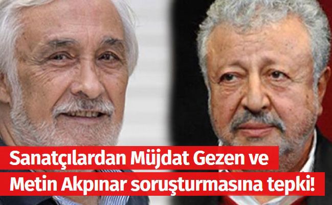 Tiyatro ve sinema sanatçısı Müjdat Gezen ile Metin Akpınar'ın siyasi iktidara yönelik eleştirileri nedeniyle Cumhurbaşkanı Erdoğan tarafından hedef gösterilmelerinin ardından soruşturma başlatılmasına müzik ve edebiyat dünyasının önemli temsilcileri tepki gösterdi.