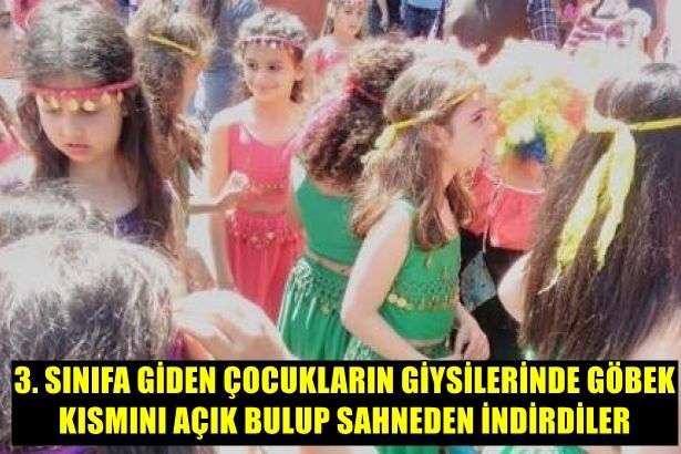 Mersin’in Akdeniz ilçesine bağlı Kazanlı Mahallesi’ndeki Kazanlı İlkokulu’nda 23 Nisan Ulusal Egemenlik ve Çocuk Bayramı Kutlamaları sırasında 3. sınıf öğrencisi kız çocuklarının gösterisi kıyafatleri gerekçe gösterilerek yarıda kesildi ve çocuklar sahneden indirildi.
