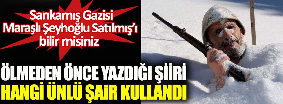 Maraşlı Şeyhoğlu Satılmış, tarihi Sarıkamış harekatından sağ dönen bir askerdi. Yemen cephesinden Sarıkamış cephesine sevk edilen askerlerden olduğu için üzerinde kışlık elbisesi bile yoktu. Savaş bittikten sonra köyüne, anne ve babasına dönmek için yola çıktı, ancak vereme yakalandı.