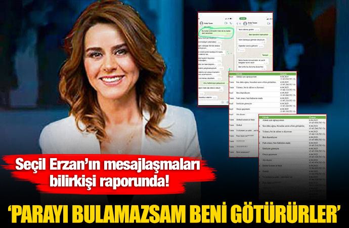 Mesajlarda Seçil Erzan’ın Merve Yılmaz’a, “Zor durumdayım. Bana bugün 250300 ne varsa acil bulabilir misin? 30 günlük. Yoksa patlayacağım yarın. Hiçbir çarem yok” dediği Yılmaz’ın ise Erzan’a, “Zor durumda olduğunu sen biliyorsun ama konuşmazsan ben hiçbir şey anlayamam daha da kötüsü endişem de arttırıyor. Sen hem hiçbir şey anlatmıyorsun hem de beni anlamıyorsun moduna giriyorsun. Halbuki yüz yüze gözümün içine bakarak konuşsak çok şey anlayacağız çözeceğiz. Kimden bulayım ben de zaten yok” diye cevap verdiği görüldü.