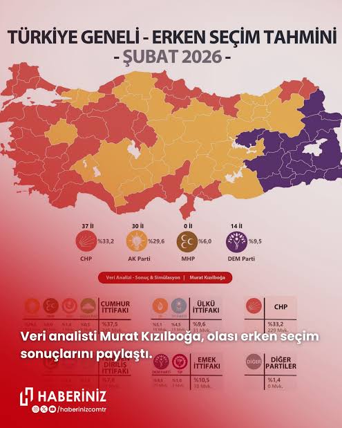 23-26 Şubat 2026 tarihleri arasında, Türkiye genelinde 60 ilde toplam 2.325 katılımcıyla CATI (Bilgisayar Destekli Telefon Görüşmesi) ve CAWI (Bilgisayar Destekli Web Anketi) yöntemleri kullanılarak gerçekleştirilen araştırmada seçmene, "Bu pazar bir milletvekili seçimi olsa hangi siyasi partiye oy verirsiniz?" sorusu yöneltildi.