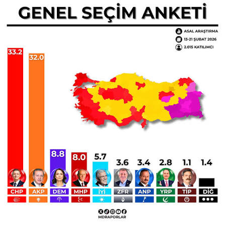 İYİ Parti: %4,54 (Bir önceki aya göre değişim yok) Yeniden Refah Partisi (YRP): %4,10 (Bir önceki aya göre 0,31 puan artış) Diğer Partiler: %2,74 (Bir önceki aya göre 0,59 puan artış) TİP: %1,01 (Bir önceki aya göre 0,12 puan düşüş)