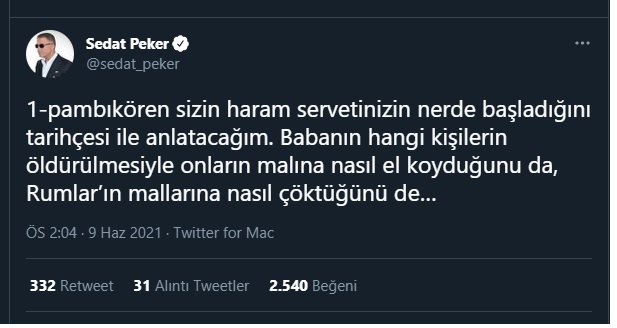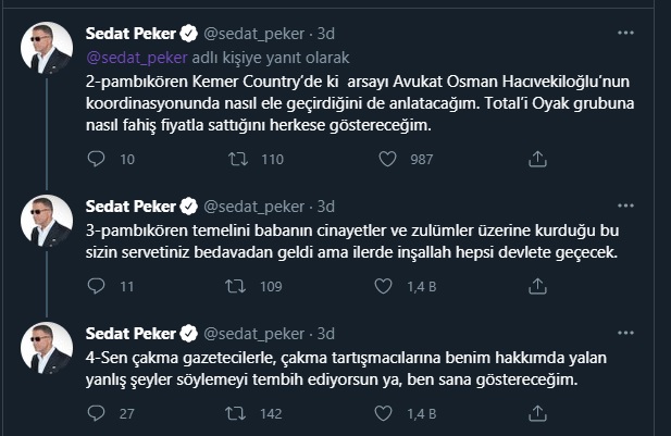 Organize suç örgütü lideri Sedat Peker, sosyal medya hesabından yaptığı paylaşımda Yıldırım Demirören'i hedef alarak sert sözler sarf etti.