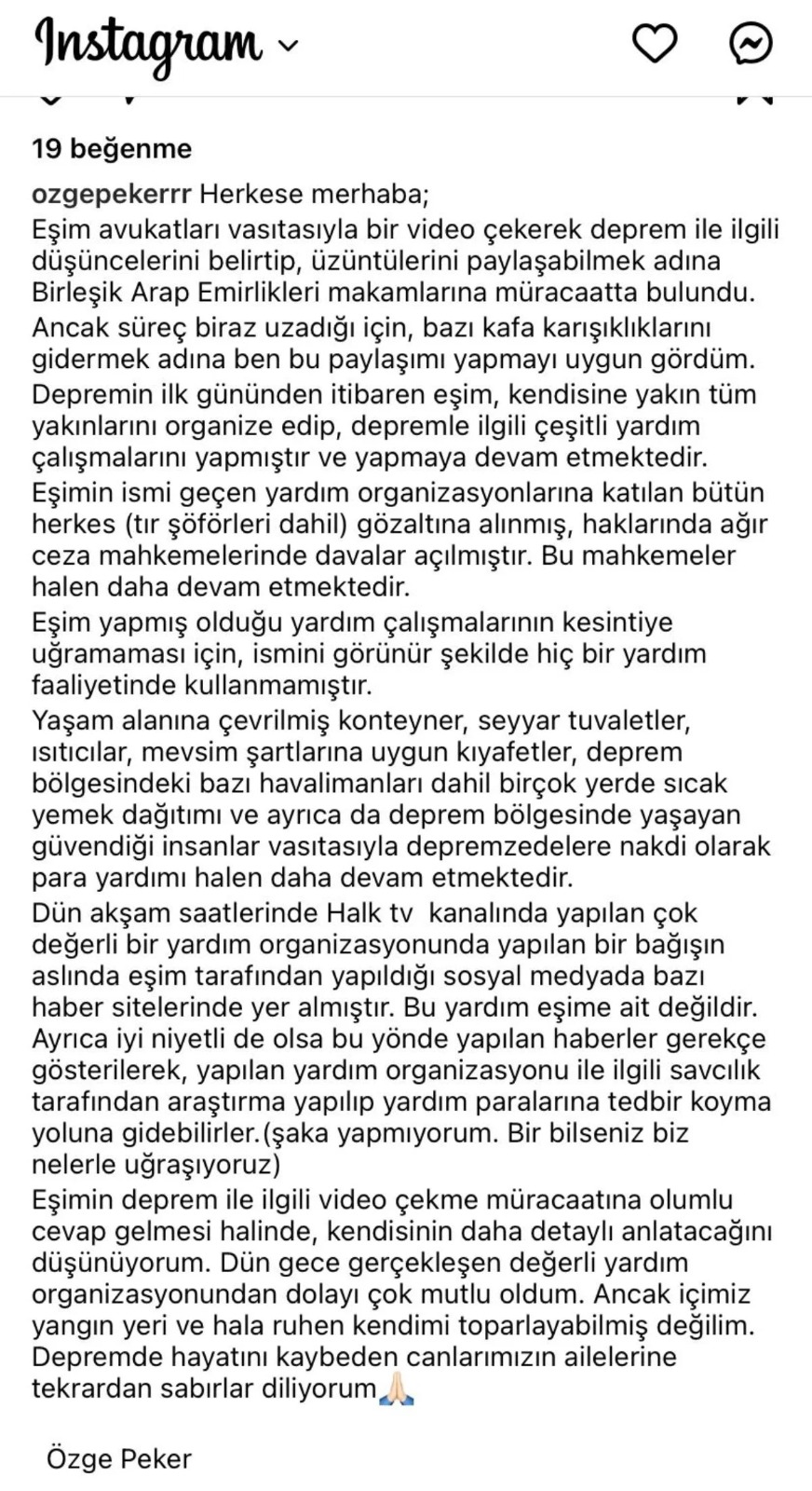 Özge Peker'in Instagram hesabından yaptığı açıklamanın tamamı şöyle: