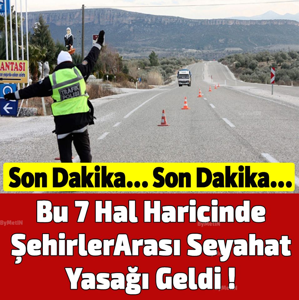 İçişleri Bakanlığı’nın 81 ilin valiliğine gönderdiği “Sokağa Çıkma Kısıtlamaları” konulu genelgede, kısıtlama olan gün ve saatlerde, 7 zorunlu hal dışında özel araçla şehirler arası seyahate izin verilmeyeceği ifade edildi. Cumhurbaşkanı Recep Tayyip Erdoğan, artan koronavirüs vakalarının görüşüldüğü Kabine toplantısının ardından alınan yeni tedbirleri açıkladı. Bu kapsamda, sadece hafta sonu uygulanan sokağa çıkma kısıtlaması bugünden itibaren hafta içi de uygulanacağı açıklanırken,