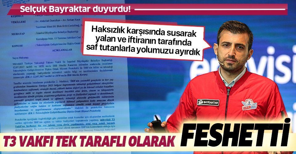 T3 Vakfı Mütevelli Heyeti Başkanı Selçuk Bayraktar da konuyla ilgili Twitter hesabından bir açıklama yaptı.