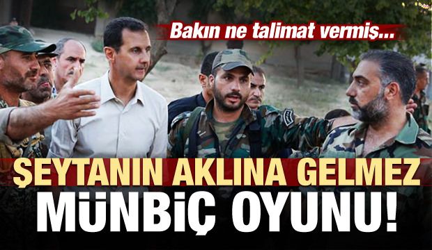 Türkiye'nin Münbiç harekâtı artık an meselesiyken terör örgütü PKK, Afrin'de başvurduğu oyunun aynısını burada da devreye soktu. Örgüt önce Esed rejimine "Buraya asker gönder" şeklinde çağrı yaptı, ardından henüz ABD askerlerinin bile terk etmediği kenti boşalttığını ileri sürdü. PKK'nın hamlesini bir adım ileri götüren Şam yönetimi ise Münbiç'e girerek bayrak diktiğini iddia etti ve "Askerlerimiz Münbiç'e girdi ve bayrağı göndere çekti. Tüm Suriye vatandaşları ve diğer tüm kişilerin tam güvenliğini garanti ediyoruz" açıklaması yaptı.