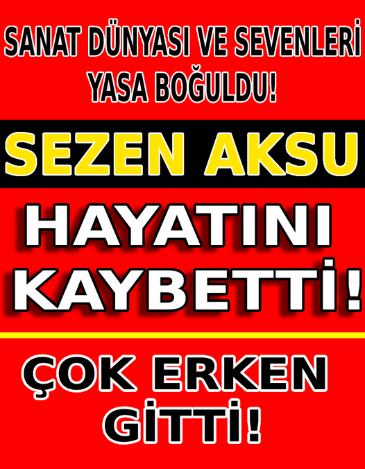 Sezen Aksu özellikle 90 lı yıllarda çıkardığı şarkılarla türk milletinin gönlüne taht kurmuş sanatçıdır..hayranlarını ve tüm türkyeyi yasa boğan haber sosyal medya hesabından duyuruldu(HABERİN DEVAMINI OKUMAK İÇİN LÜTFEN FOTOĞRAFIN ÜZERİNE TlKLAYlNLZ.