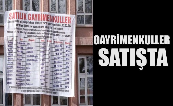 2019'da yıl sonu açığı 39.9 milyar lira olarak gerçekleşen SGK'nın, 2020'nin sadece ilk 7 ayında verdiği açık ise tam 50 milyar 39 milyon TL. SGK, Ankara Kızılay'daki binasına ‘Satılık' ilanı asarak, gayrimenkullerini satışa çıkardı.