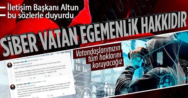'Siber Vatan'ın egemenlik hakkımızdır diyen Altun, "Vatandaşlarımızın dijital platformlarda yaşadığı mahremiyet ihlallerine, mağduriyetlerine karşı tüm haklarını koruyacağız. Bilinmeli ki her türlü terör destekçiliğini, dezenformasyon, algı operasyonlarını aynı kararlılıkla bertaraf edeceğiz" ifadelerini kullandı.