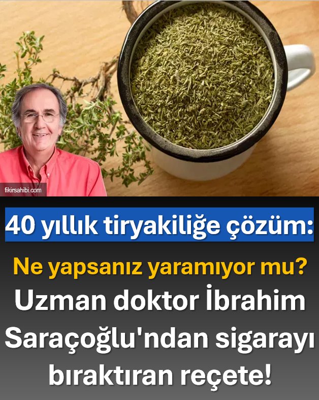 İbrahim Saraçoğlu, katıldığı programda sigara bağımlılığı hakkında çeşitli bilgiler verdi. Bu bağımlılıktan kurtulmak isteyen bireyler için tiksindiren oldukça etkili bir kür paylaştı. Bu kür, sigara istediğiniz zamanlarda bu alışkanlığa yeltenmenizi önleyecek. İşte Saraçoğlu'nun sigarayı bırakma reçetesi. Çok deneyen ama yıllarca sigara bağımlılığından kurtulamayanlar için kesinlikle denenmesi gereken etkili ve pratik bir tarif. Tüm ayrıntılar, ürün, kullanıl şekli ve sıklığı haberimizin devamında... ((Devamı için YUKARIDAKİ kapak görselin üzerindeki SAĞ OK ya da altındaki NUMARALI KUTUCUKLAR ile 2. sayfaya geçiniz))
