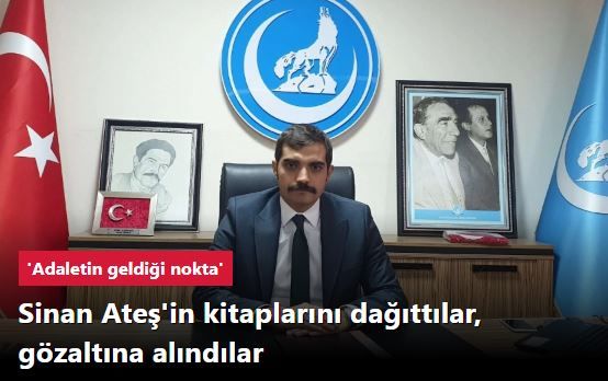 Ankara'da öldürülen eski Ülkü Ocakları Genel Başkanı Sinan Ateş'in kendisinin yazdığı "Göktürkler" kitabını Bursa'nın Mustafakemalpaşa ilçesinde ücretsiz dağıtan üç genç bugün gözaltına alındı.
