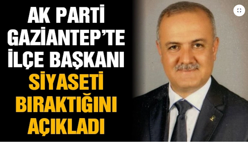 AK Parti Gaziantep’te flaş bir gelişme yaşandı. İslahiye İlçe Başkanı Mehmet Aslan’ın istifasını İl Başkanlığına sundu. İstifasını sunan Aslan, siyaseti bıraktığını açıkladı.