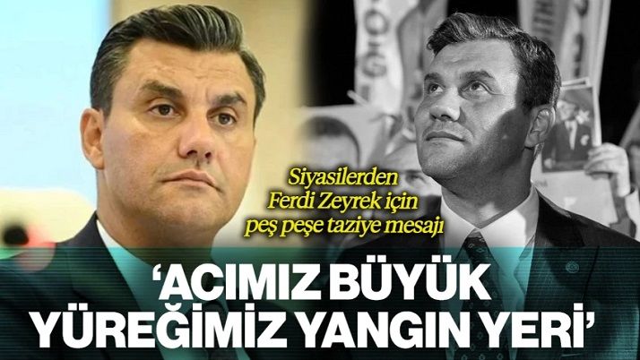 "Manisa Büyükşehir Belediye Başkanı Ferdi Zeyrek'i kaybettik. Allah’tan rahmet diliyoruz. Başta kıymetli ailesi olmak üzere, sevenlerine, CHP camiasına, siyaset hayatımıza ve tüm vatandaşlarımıza başsağlığı diliyoruz."