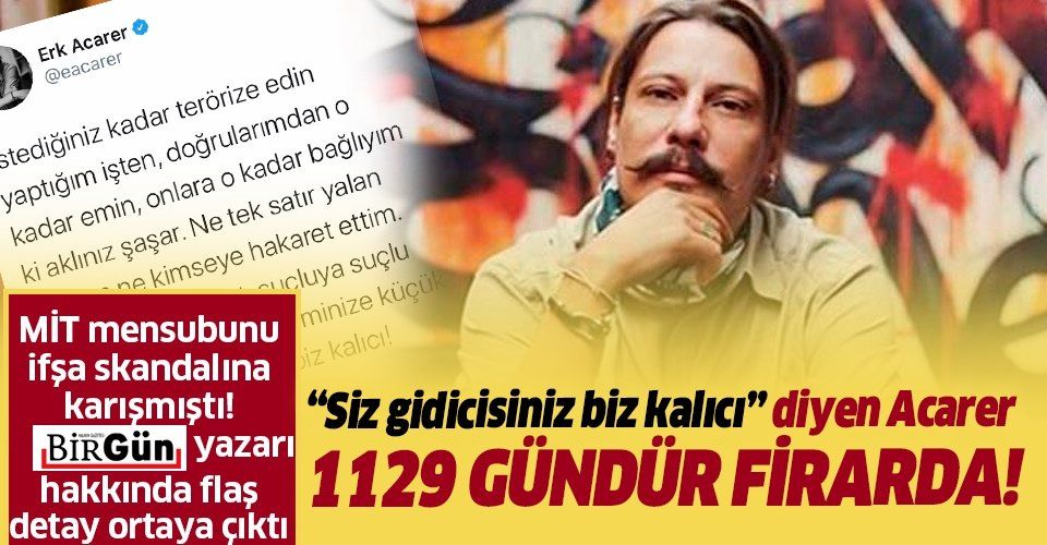 "Siz gidicisiniz biz kalıcı!" diyen Erk Acarer'in, 3 sene 1 ay 19 gündür firarda olduğu tespit edildi.