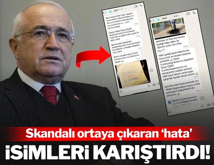 Bu kez torpil skandalı 'sehven' patladı... Kayseri Nuh Hacı Yazgan Üniversitesi’nde görev yapan bir akademisyen, eski Adalet Bakanı Cemil Çiçek zannederek aynı isimdeki genç bir avukatın telefonuna WhatsApp'tan mesaj gönderdi.