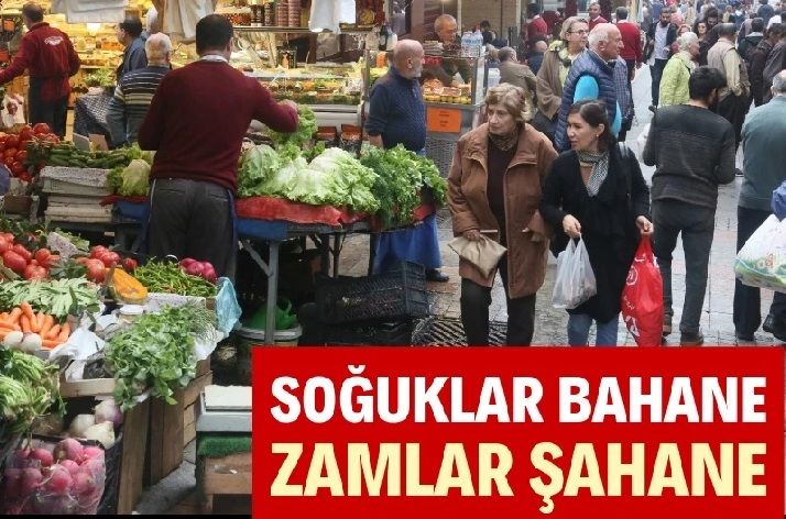 Yanlış ekonomi politikalarının acısını vatandaş ve çiftçi çekiyor. Son dönemlerde sebze meyvedeki fahiş artışlar bir zirai dona, bir sele, bir hortuma bağlanıyor. Vatandaş yüksek fiyatlar nedeniyle kış sebze ve meyvelerine hasret kaldı. Hal fiyatları bile cep yakarken, tarladan sofraya birçok üründe fiyatlar 4’e katlandı. Birkaç hafta önce üreticinin kilogramını 50 TL’ye sattığı salatalığın fiyatı marketlerde 200 TL’ye ulaştı. Yine birkaç hafta önce kilogramını 20-30 TL’ye sattığı kabağın fiyatı da 100 TL’yi aştı. Sivri biberin kilosu 130 TL’yi aştı. Marketlerde maydanozun demeti 30 liraya çıkarken kıvırcık ise 45 liradan satılıyor.