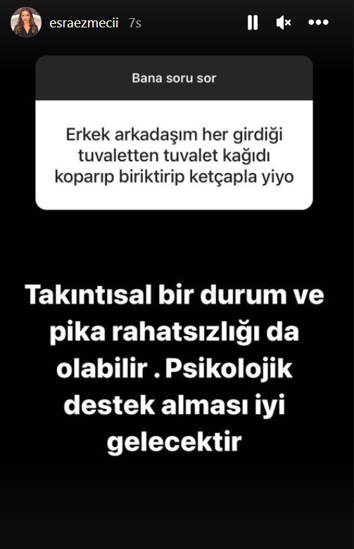 Kişisel Instagram hesabından gelen soruları cevaplayan Esra Ezmeci, yine gündem olmaya devam ediyor. Fox TV'deki programıyla tanınan psikolog Esra Ezmeci, dün akşam kendisine gelen soruları yanıtladı. Annesiyle kocasının şehvetli bir aşk yaşadığını ifade eden kadının isyanı sosyal medyada gündem oldu. Babasının erkek sevgilisi olduğunu söyleyen kişi de yardım istedi. İşte o ilginç sorular...