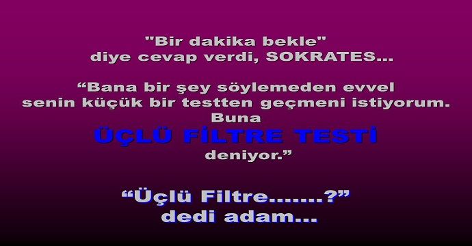 Buna “Üçlü Filtre Testi’ deniyor. Benimle arkadaşım hakkında konuşmaya başlamadan önce, bir süre durup ne söyleyeceğini filtre etmek, iyi bir fikir olabilir.